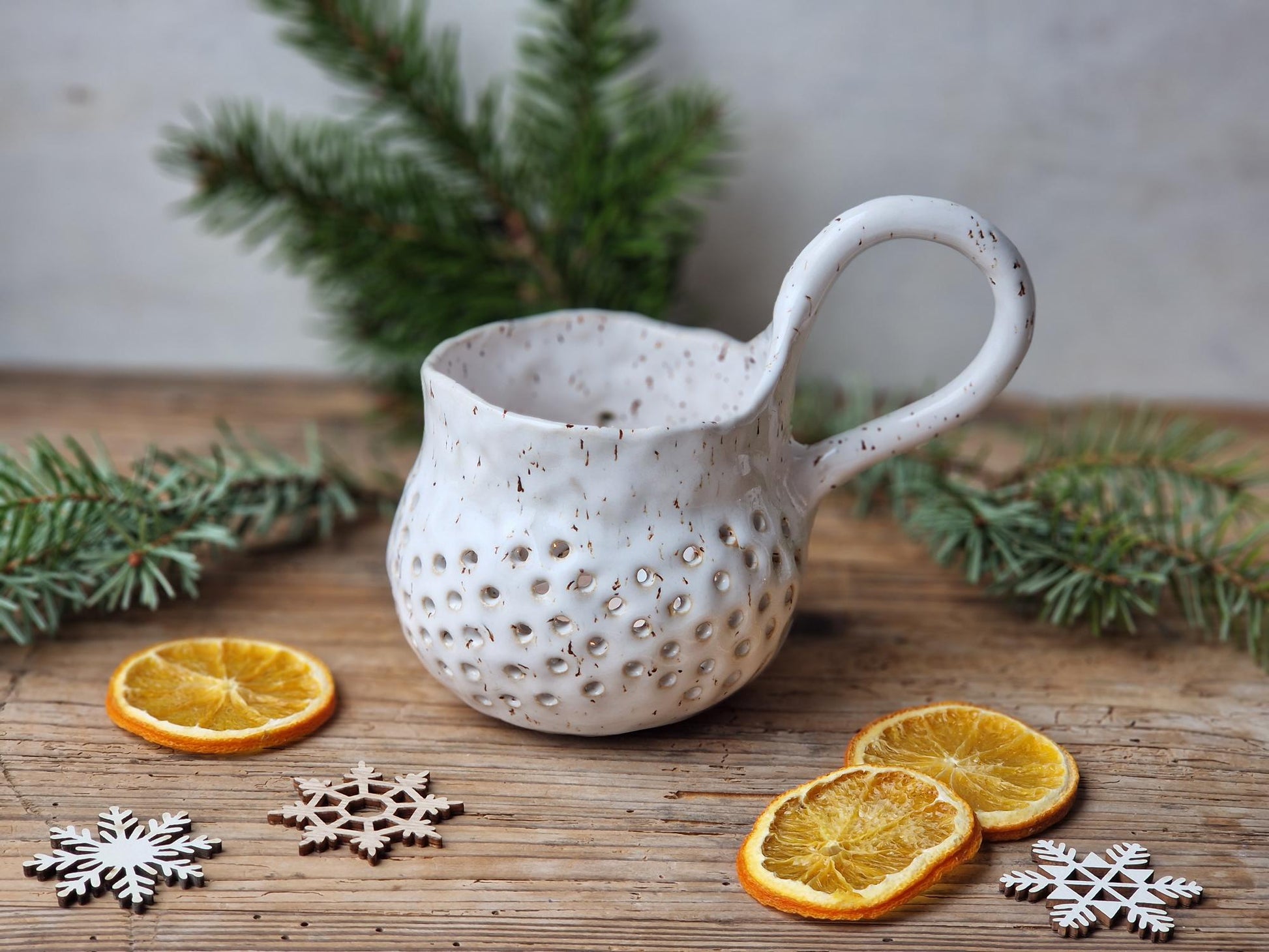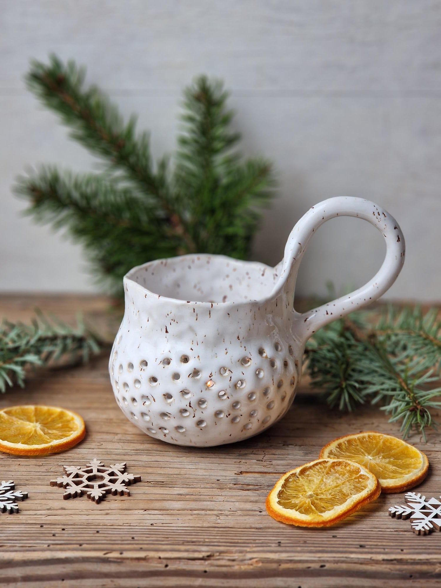 Hand-built from speckled stoneware clay and glazed in glossy white.