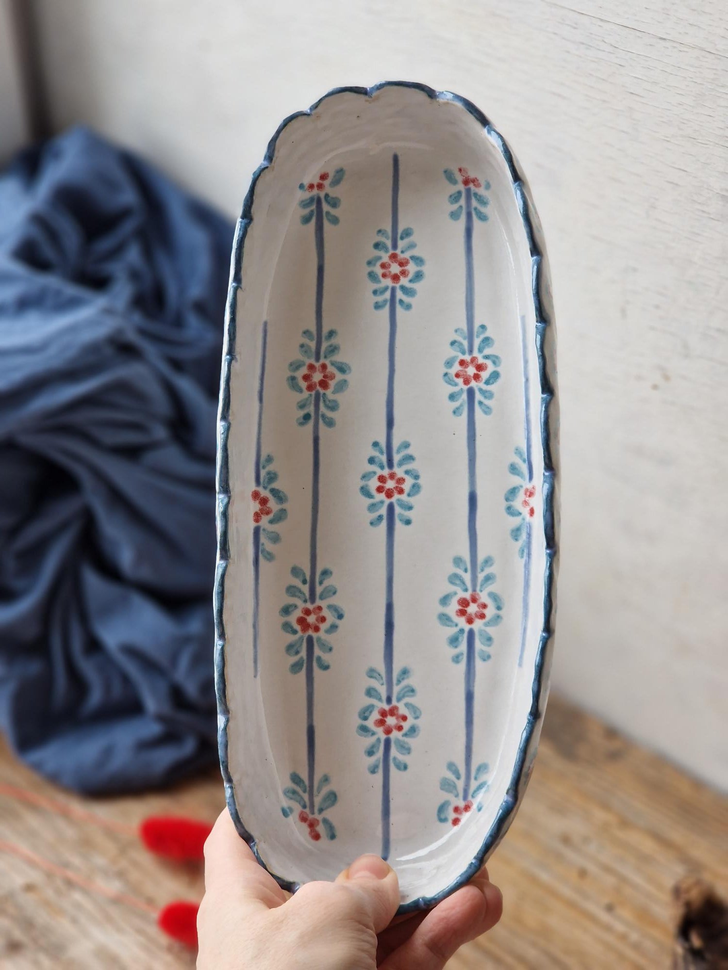 Lovingly handmade scalloped ceramic platter with floral pattern to serve your delicious food, snacks or simply for decoration to bring more beauty to your home!