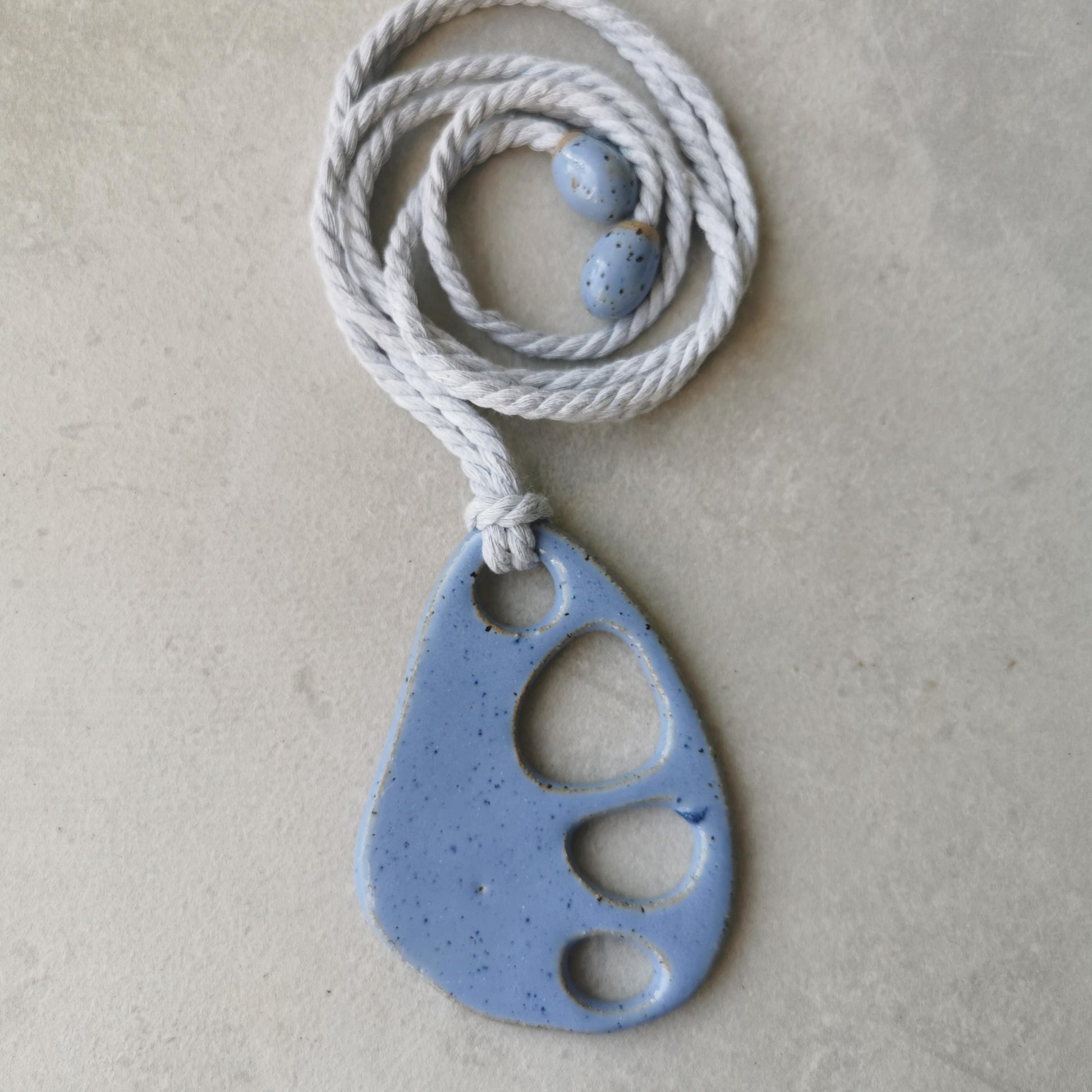 Speckled stoneware clay, non toxic glaze, soft cotton cord 110cm long