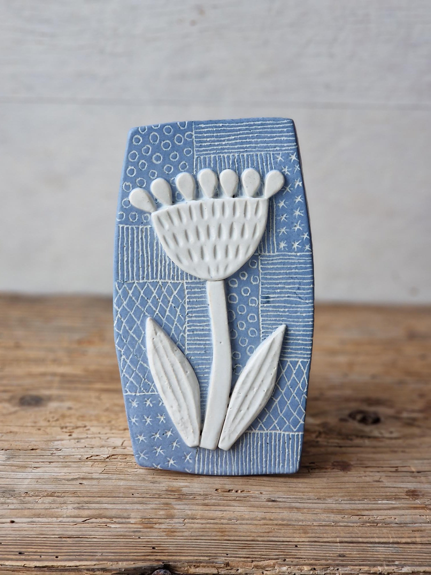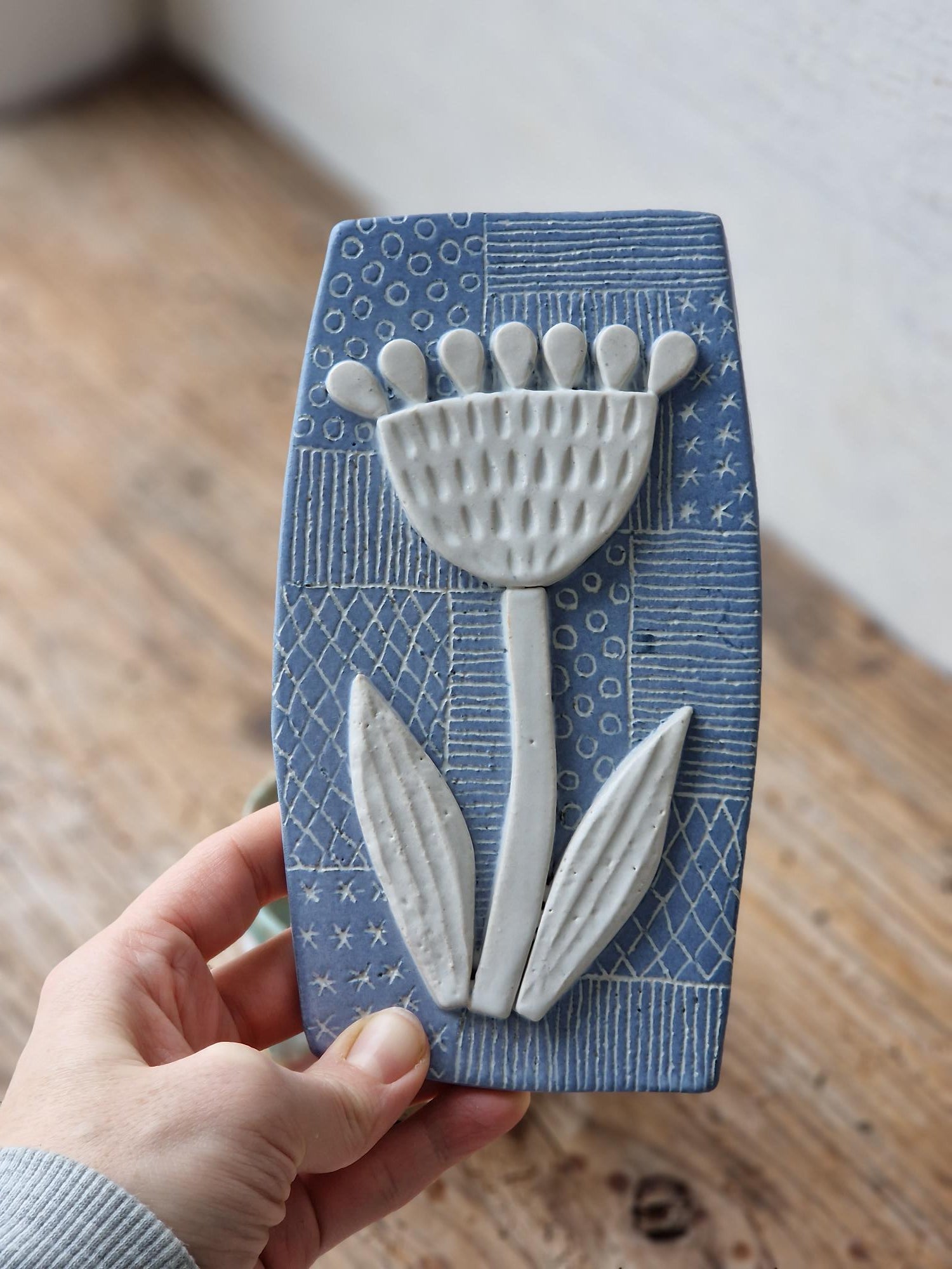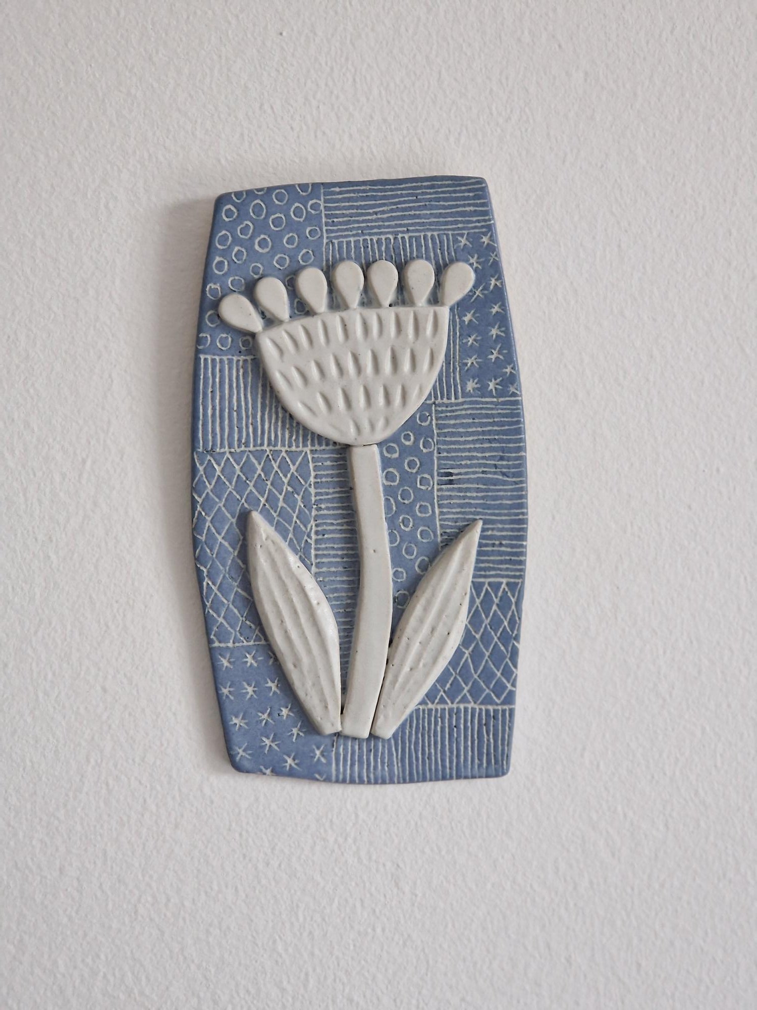 A lovingly handmade floral ceramic wall art.