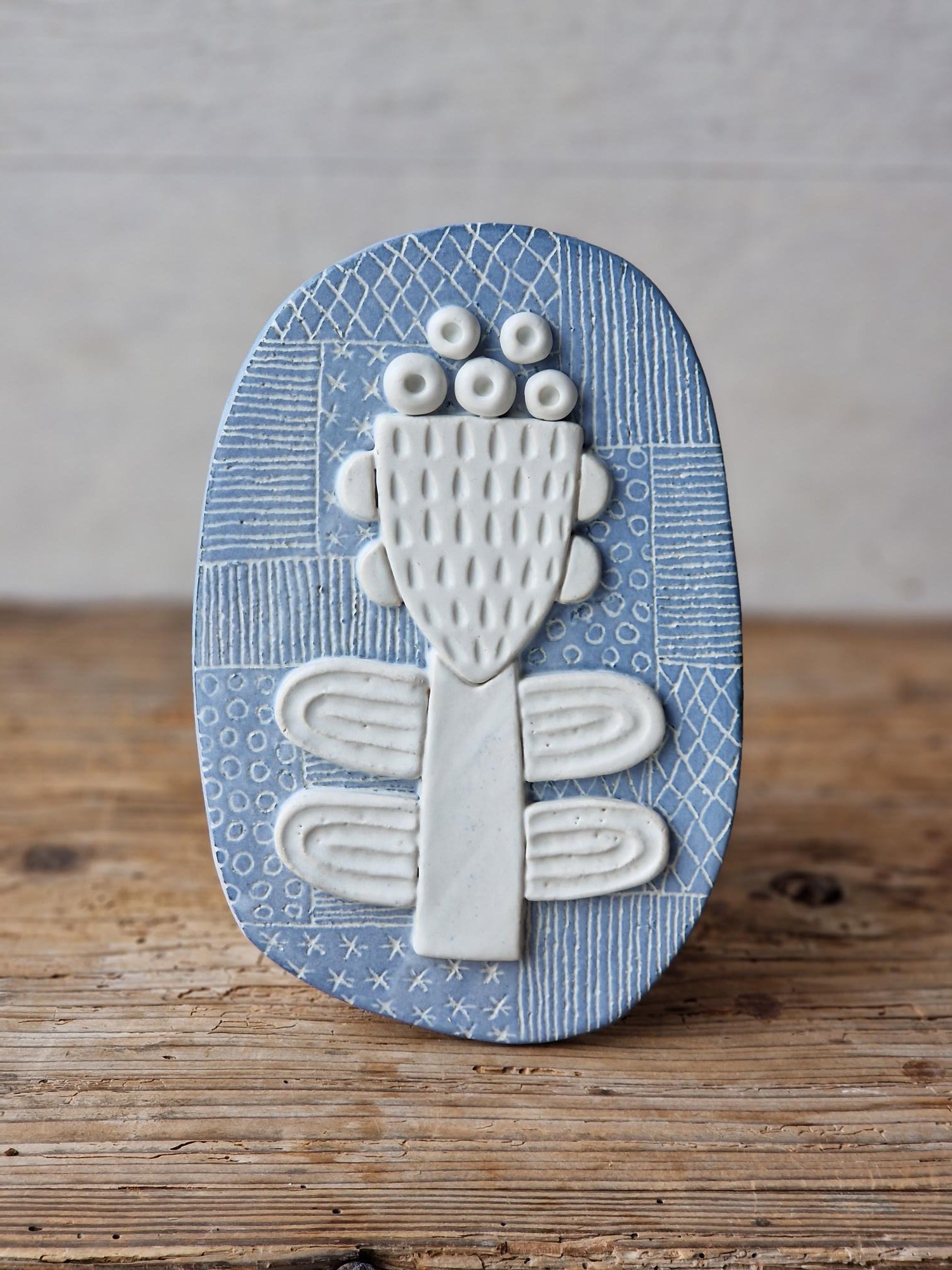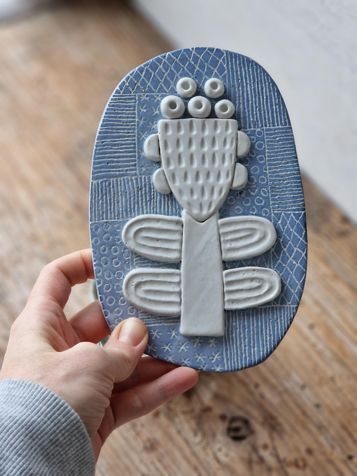 MATERIALS: brown speckled stoneware clay, engobe, matte white glaze.